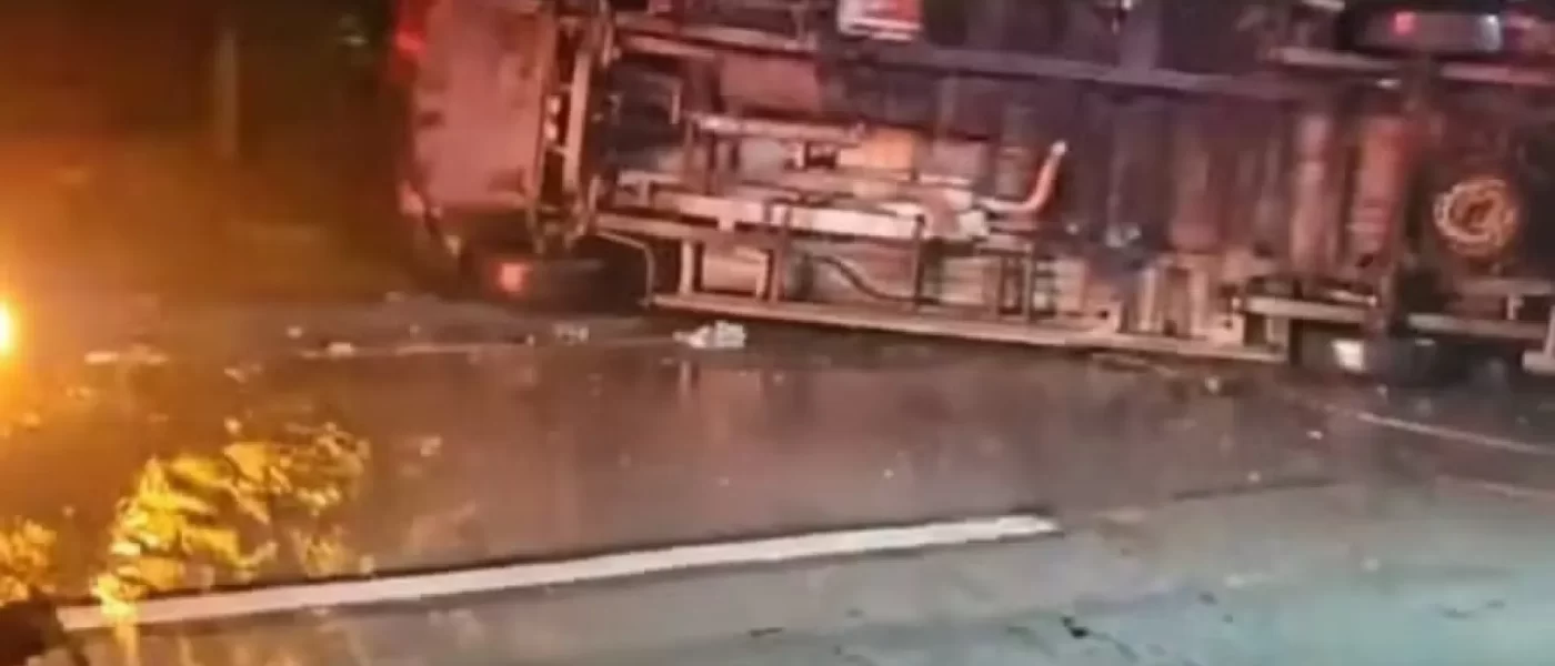 Colisão envolvendo dois caminhões, dois carros e uma van de transporte de pacientes ocorreu em Guapimirim, na noite de sábado. Oito pessoas ficaram feridas, sem registro de casos graves, e as causas do acidente serão apuradas pela Polícia Civil [[{“value”:”
