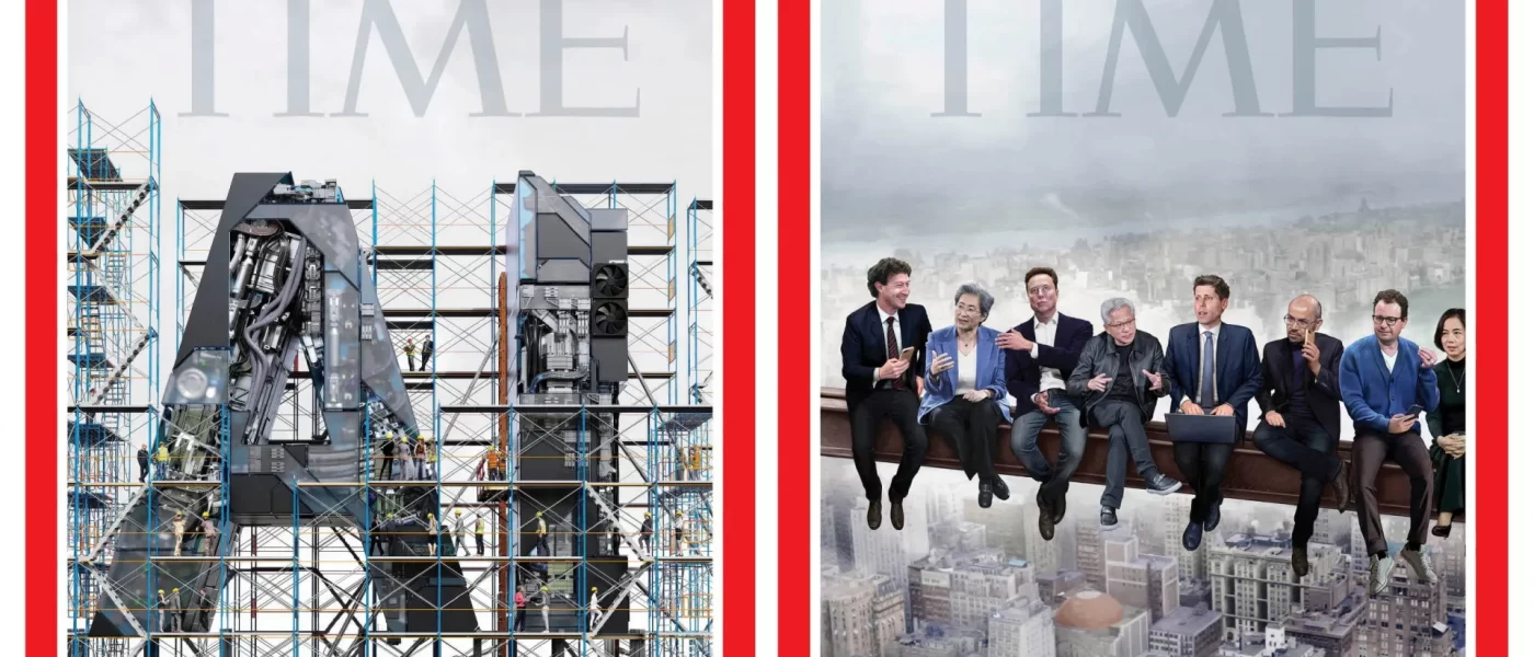 A revista Time nomeou os “Arquitetos da IA” como a Pessoa do Ano de 2025, com duas capas: uma mostrando o título como se estivesse em construção e…