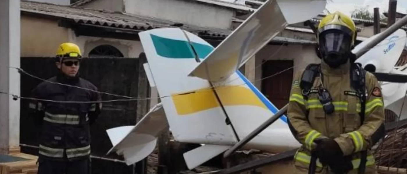 Avião de pequeno porte cai e atinge casa em Goiânia, e piloto sobrevive