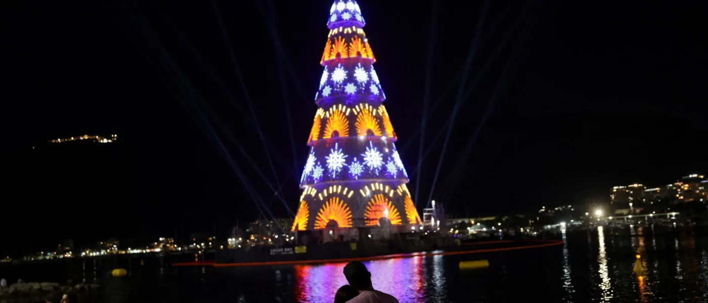 Com 80 metros de altura e mais de 2,3 milhões de luzes, estrutura flutuante inaugura o Natal no Rio de Janeiro com shows diários e promete atrair milhares de visitantes até 6 de janeiro. [[{“value”:”