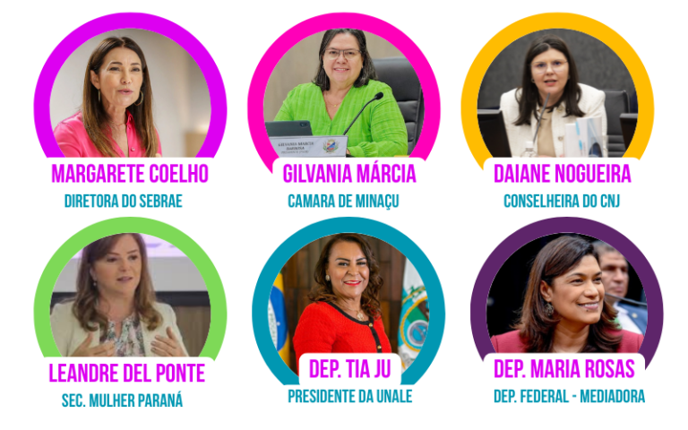 A presidente da Câmara de Minaçu, Gilvania Márcia, deverá proferir seu pronunciamento, da ordem de 10 minutos, por volta de 14h. Em seguida, ela compõe o dispositivo de debates sobre “Cooperação entre os Órgãos e Trabalho em Rede”. Neste painel, participam, além de Gilvânia, a diretora do Sebrae Nacional, Margarete Coelho, a conselheira do Conselho Nacional de Justiça – CNJ, Daiane Nogueira de Lira, a Secretária de Estado da Mulher do Paraná, Leandre Dal Ponte e a deputada federal Tia Ju – Presidente da UNALE – União Nacional dos Legisladores e Legislativos Estaduais. A mediação ficará por conta da deputada federal, Maria Rosas.