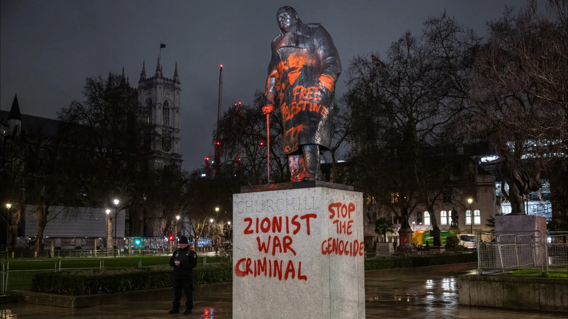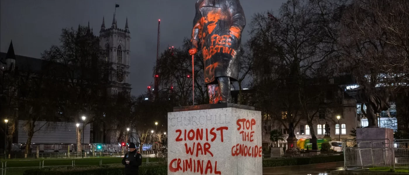 Estátua de Churchill vandalizada em Londres: “Criminoso de guerra”