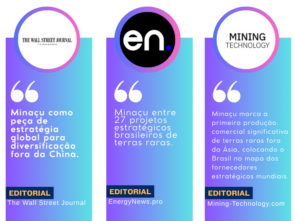 Mining-Technology.com, Inside Climate News repercutiram Minaçu como exemplo da tentativa global de diversificar a cadeia de suprimentos de minerais críticos.